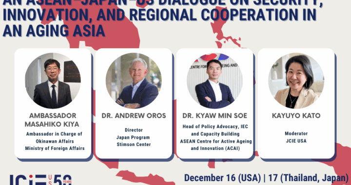 JCIE USA will host a virtual ASEAN–Japan–US dialogue on security, innovation, and regional cooperation in an aging Asia.