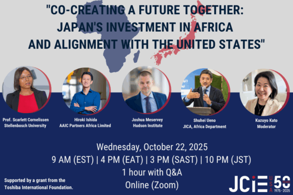 The Japan Center for International Exchange (JCIE USA) will host a webinar on October 22 with four distinguished speakers to provide Japanese, US, and African perspectives on Japan-Africa partnership….